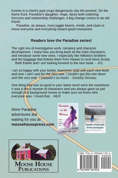 In book 5 of the Paradise series, events in a client's past erupt dangerously into the present. On the home front, Paradise's daughter, Hope, faces both widening horizons and relationship challenges. Paradise, as always, must juggle hearts, minds, and clues to move everyone and everything toward good resolutions.