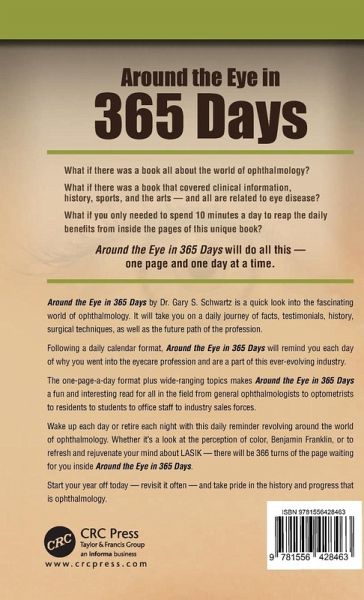 Around the Eye in 365 Days by Dr. Gary Schwartz is a quick look into the fascinating world of ophthalmology. It will take you on a daily journey of facts, testimonials, history, surgical techniques, as well as the future path of the profession.