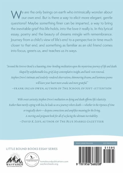 We are the only beings on earth who intrinsically wonder about our own end. But is there a way to elicit more elegant, gentle questions? Maybe something finer can be imparted, a way to bring the inevitable grief this life holds, into the love it really is. In this lyrical essay, poetry and the beauty of dreams mingle with remembrance. Journey from a child's view of life's end to a perspective in time much closer to that end, and something as familiar as an old friend comes into focus, greets us, and teaches us its ways.