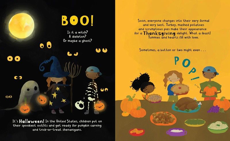 3,2,1 ... Happy New Year! As millions of people celebrate the change of the New Year, get ready to embark on a year-long adventure around the globe. A book to discover 16 unique holidays, traditions and celebrations of different cultures. From Easter, EID, Diwali, Thanksgiving and Kwanzaa, to festive traditions of Indigenous populations and Midsummer's Day, every turn of the page brings with it yet another reason for people to come together and celebrate.