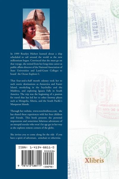 In 1999 Roz Hiebert learned about a ship scheduled to sail around the world as the new millennium began. Convinced that she must go on that voyage, she retired from her long-time career as public affairs director of the National Association of State Universities and Land-Grant Colleges to board the Ocean Explorer I. That four-and-a-half month odyssey took her to such exotic destinations as Antarctica and Easter Island, snorkeling in the Seychelles and the Maldives, and exploring Iguazu Falls in South America. The trip was the beginning of a passion for travel that has led her to other faraway places such as Mongolia, Siberia, and the South Pacific's Marquesas Islands. Through her website, www.travelwithroz.com, she has shared these experiences with her four children and friends. This book presents the personal impressions and sometimes hilarious adventures of an intrepid traveler who won't let age get in her way as she explores remote corners of the globe. She invites you to come along for the ride if you have a spirit of adventure, armchair or otherwise.