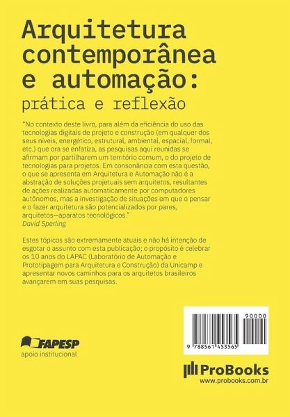 "A organização deste livro celebra os dez anos de existência do LAPAC (Laboratório de Automação e Prototipagem para Arquitetura e Construção) da Unicamp, concebido pela professora Gabriela Celani e gerido por ela e sua extensa equipe de orientandos, representada na co-organização desta publicação por Maycon Sedrez. Não devemos entender, no entanto, que a palavra laboratório deva ser interpretada como se desse significado, meramente, às instalações físicas nas quais se desenvolvem atividades de pesquisa, o que, em se tratando do campo da arquitetura e do urbanismo no Brasil, não seria menor. Neste caso, trata-se de algo maior, da junção fecunda e retroalimentadora entre labor, conhecimento e experimentação em seu melhor modo de conexão: a articulação entre teoria e prática com o objetivo de tensionar o conhecimento para além do perímetro do senso comum. Para além da eficiência do uso das tecnologias digitais de projeto e construção (em qualquer dos seus níveis, energético, estrutural, ambiental, espacial, formal, etc.) que ora se enfatiza, as pesquisas aqui reunidas se afirmam por partilharem um território comum, o do projeto de tecnologias para projetos. Em consonância com esta questão, o que se apresenta em Arquitetura e Automação não é a abstração de soluções projetuais sem arquitetos, resultantes de ações realizadas automaticamente por computadores autônomos, mas a investigação de situações em que o pensar e o fazer arquitetura são potencializados por pares, arquitetos-aparatos tecnológicos." David Sperling Estes tópicos são extremamente atuais e não há intenção de esgotar o assunto com esta publicação; o propósito é celebrar os 10 anos do LAPAC (Laboratório de Automação e Prototipagem para Arquitetura e Construção) da Unicamp e apresentar novos caminhos para os arquitetos brasileiros avançarem em suas pesquisas.