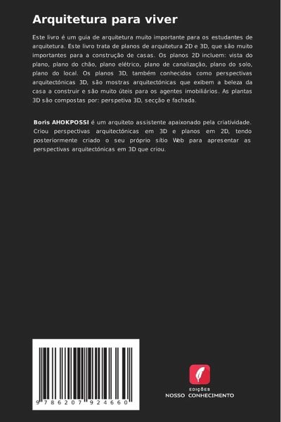 Este livro é um guia de arquitetura muito importante para os estudantes de arquitetura. Este livro trata de planos de arquitetura 2D e 3D, que são muito importantes para a construção de casas. Os planos 2D incluem: vista do plano, plano do chão, plano elétrico, plano de canalização, plano do solo, plano do local. Os planos 3D, também conhecidos como perspectivas arquitectónicas 3D, são mostras arquitectónicas que exibem a beleza da casa a construir e são muito úteis para os agentes imobiliários. As plantas 3D são compostas por: perspetiva 3D, secção e fachada.