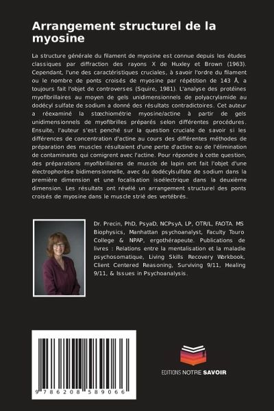 La structure générale du filament de myosine est connue depuis les études classiques par diffraction des rayons X de Huxley et Brown (1963). Cependant, l'une des caractéristiques cruciales, à savoir l'ordre du filament ou le nombre de ponts croisés de myosine par répétition de 143 Å, a toujours fait l'objet de controverses (Squire, 1981). L'analyse des protéines myofibrillaires au moyen de gels unidimensionnels de polyacrylamide au dodécyl sulfate de sodium a donné des résultats contradictoires. Cet auteur a réexaminé la stoechiométrie myosine/actine à partir de gels unidimensionnels de myofibrilles préparés selon différentes procédures. Ensuite, l'auteur s'est penché sur la question cruciale de savoir si les différences de concentration d'actine au cours des différentes méthodes de préparation des muscles résultaient d'une perte d'actine ou de l'élimination de contaminants qui comigrent avec l'actine. Pour répondre à cette question, des préparations myofibrillaires de muscle de lapin ont fait l'objet d'une électrophorèse bidimensionnelle, avec du dodécylsulfate de sodium dans la première dimension et une focalisation isoélectrique dans la deuxième dimension. Les résultats ont révélé un arrangement structurel des ponts croisés de myosine dans le muscle strié des vertébrés.