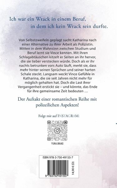 Ich war ein Wrack in einem Beruf, in dem ich kein Wrack sein durfte.Von Selbstzweifeln geplagt sucht Katharina nach einer Alternative zu ihrer Arbeit als Polizistin. Mitten in dem Wahnsinn zwischen Studium und Beruf lernt sie Vince kennen. Mit ihren Schlagabtäuschen kitzelt er Seiten an ihr hervor, die sie lieber verstecken würde. Doch als er ihr nachts betrunken vors Auto läuft, merkt sie, dass mehr hinter seinen Sprüchen und seiner harten Schale steckt. Langsam weckt Vince Gefühle in Katharina, die sie seit Jahren nicht mehr für möglich gehalten hat. Doch die Last ihrer Vergangenheit erstickt sie und könnte, das Ende für ihre gemeinsame Zeit bedeuten ...