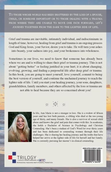 To those whose world has been shattered by the loss of a spouse, child, or someone important or to those dealing with a trauma from where they are unable to move one inch forward, let's journey together from the dark to the lighter side of life. Grief and trauma are inevitable, intimately individual, and indiscriminate in length of time; however, healing from grief and trauma is an ongoing process God and King Jesus, your Savior, desire you to take. He will turn your ashes into beauty, your sadness into joy, and your brokenness into wholeness. Sometimes in our lives, we need to know that someone has already been where we are and is willing to share their grief or trauma journey. This is not about "getting better" or feeling justified in your hurt; it is about changing, evolving, growing, and finding a purposeful life after deep grief or trauma. In this book, you are going to meet yourself, love yourself, commit to being the best version of yourself, and continue the unchained journey to reach the lighter side of life. Until you start your healing journey, your sons, daughters, grandchildren, family members, and others affected by the loss or trauma are not able to heal because they are so concerned about you!