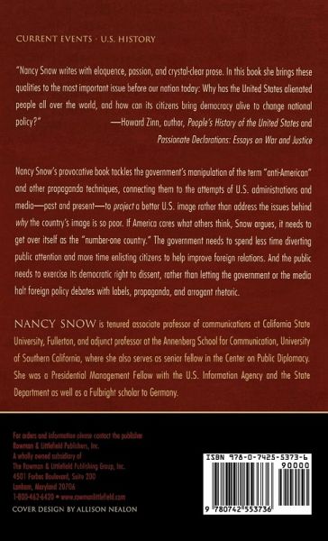 We hear "anti-American" on a daily basis, it seems. When does it indicate a serious threat to security? When is it merely a label that the Bush administration slaps on anyone who dares to disagree with its foreign policy? Nancy Snow tackles not only the government's manipulation of the term, but also the broader use of U.S. propaganda for public relations. She further connects these to the tendency of U.S. administrations and media-past and present-to focus on projecting a better U.S. image rather than addressing the issues behind why the country's image is so poor, both at home and abroad. Snow is an American propaganda expert and a former U.S. Information Agency and State Department official. If America truly cares what others think, she argues, it needs to get over itself as the "number-one country." The government needs to spend less time diverting public attention and more time enlisting the public to help improve foreign relations. It needs to involve all citizens, not just government-approved lackeys, "journalists" paid to talk nice, or the predictable influentials and elites typically involved in foreign affairs. And the public needs to exercise its right to dissent-a critical power at the heart of democracy-rather than letting the government or the media halt foreign policy debates with labels, propaganda, and arrogant rhetoric.