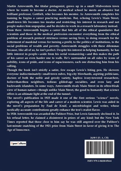"Arrowsmith" by Sinclair Lewis follows the journey of Martin Arrowsmith, a young and ambitious medical student at the University of Winnemac. The novel begins with Martin's early fascination with science, inspired by the eccentric Doc Vickerson in his hometown of Elk Mills. As Martin enters medical school, he is eager to delve into the world of bacteriology and dreams of making groundbreaking discoveries. However, he quickly becomes disillusioned with the commercialism and lack of genuine scientific curiosity among his peers and professors. Martin's idol is the enigmatic Professor Max Gottlieb, a dedicated scientist who embodies the ideals of research and discovery. Despite setbacks, including being denied early entry into Gottlieb's bacteriology class, Martin remains determined to pursue his passion for science. Throughout his journey, he navigates the challenges of medical school, the influence of his fraternity brothers at Digamma Pi, and his evolving relationship with Madeline Fox, a fellow student with whom he shares intellectual and romantic interests. The novel explores themes of scientific integrity, the conflict between commercial success and genuine inquiry, and the personal growth of a young man striving to find his place in the world of medicine.