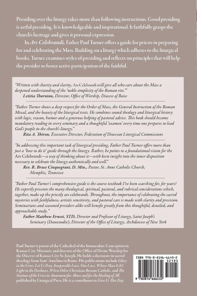 Presiding over the liturgy takes more than following instructions. Good presiding is artful presiding. It is knowledgeable and inspirational. It faithfully grasps the church's heritage and gives it personal expression. In Ars Celebrandi, Father Paul Turner offers a guide for priests in preparing for and celebrating the Mass. Building on a liturgy which adheres to the liturgical books, Turner examines styles of presiding and reflects on principles that will help the presider to foster active participation of the faithful.