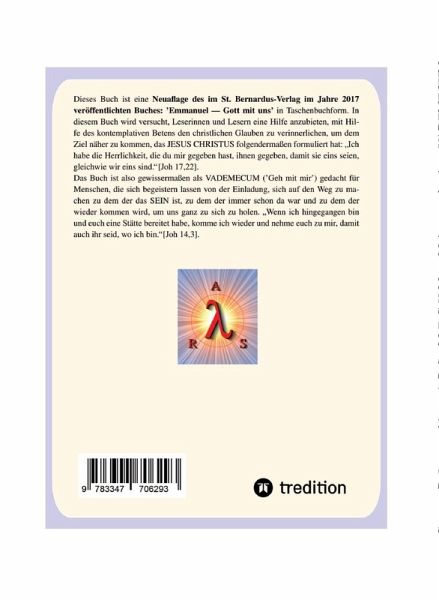 In diesem Buch wird versucht, Leserinnen und Lesern eine Hilfe anzubieten, mit Hilfe des kontemplativen Betens den christlichen Glauben zu verinnerlichen und dem Ziel näher zu kommen, das JESUS CHRISTUS folgendermaßen formuliert hat: "Ich habe die Herrlichkeit, die du mir gegeben hast, ihnen gegeben, damit sie eins seien, gleichwie wir eins sind." [Joh 17,22].Das Buch ist also gewissermaßen als VADEMECUM ('Geh mit mir') gedacht für Menschen, die sich begeistern lassen von der Einladung, sich auf den Weg zu machen zu dem, der das SEIN ist, zu dem der immer schon da war und zu dem, der wieder kommen wird, um uns ganz zu sich zu holen. "Wenn ich hingegangen bin und euch eine Stätte bereitet habe, komme ich wieder und nehme euch zu mir, damit auch ihr seid, wo ich bin." [Joh 14,3].