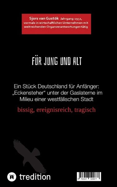 Ein Teil eines Städtchens - in der Region des westfälischen Schinkens, des Steinhägers und des Rolinckbiers - ist Schauplatz von Heimat und Milieu in dieser Erzählung. Unter der Gaslaterne, an der Ecke, am Briefkasten stehen sie immer: Die Jungs, aus denen Männer werden. Jeder hat seine eigene Entwicklung und sein eigenes Schicksal. Eines bleibt bis heute - für die noch im Leben stehen - gleich: Sie können nur die alten Freunde verlieren, keine neuen Freunde mehr gewinnen. Die Vergangenheit zeigt sich stärker als die Gegenwart.