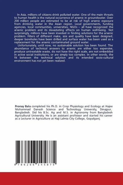 In Asia, millions of citizens drink polluted water. One of the main threats to human health is the natural occurrence of arsenic in groundwater. Over 200 million people are estimated to be at risk of high arsenic exposure from drinking water in the Asian region. Local governments, funding agencies, local communities, universities, NGOs - all have recognized the arsenic problem and its devastating effects on human well-being. Not surprisingly, millions have been invested in finding solutions for the arsenic problem. Filters of different make, size and quality have been designed, deeper boreholes have been drilled and surface water has been used as a replacement for the arsenic contaminated ground water. Unfortunately, until now, no sustainable solution has been found. The abundance of technical answers to arsenic are either too expensive, produce untreatable waste, do not have the right scale, are not embedded in active social institutions, or are simply too complex. In other words, the fit between the technical solution and its intended socio-cultural environment has not yet been realized.