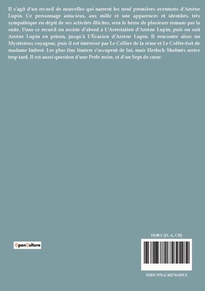 Il s¿agit d¿un recueil de nouvelles qui narrent les neuf premières aventures d¿Arsène Lupin. Ce personnage astucieux, aux mille et une apparences et identités, très sympathique en dépit de ses activités illicites, sera le héros de plusieurs romans par la suite. Dans ce recueil on assiste d¿abord à L'Arrestation d'Arsène Lupin, puis on suit Arsène Lupin en prison, jusqüà L'Évasion d'Arsène Lupin. Il rencontre alors un Mystérieux voyageur, puis il est intéressé par Le Collier de la reine et Le Coffre-fort de madame Imbert. Les plus fins limiers s¿occupent de lui, mais Herlock Sholmès arrive trop tard. Il est aussi question d¿une Perle noire, et d¿un Sept de c¿ur.