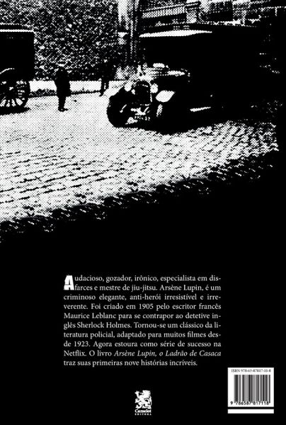 Audacioso, gozador, irônico, especialista em disfarces e mestre de jiu-jitsu. Arsène Lupin, é um criminoso elegante, anti-herói irresistível e irreverente. Foi criado em 1905 pelo escritor francês Maurice Leblanc para se contrapor ao detetive inglês Sherlock Holmes. Tornou-se um clássico da literatura policial, adaptado para muitos filmes desde 1923. Agora estoura como série de sucesso na Netflix. O livro Arsène Lupin, o Ladrão de Casaca traz suas primeiras nove histórias incríveis.