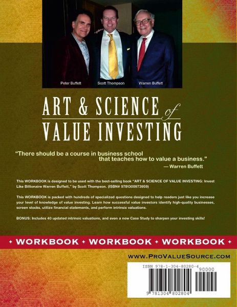 This is the official WORKBOOK (ISBN# 9781304802804) designed to be used along with the best-selling TEXTBOOK (ISBN# 9781300973959, sold separately), and is being used at accredited colleges, business schools, & universities across America! Foreword written by Peter Buffett, son of billionaire value investor Warren Buffett. This WORKBOOK is packed with hundreds of specialized questions designed to help you to increase your value investing knowledge, abilities, and performance! Learn how to identify high-quality businesses, successfully screen stocks, read financial statements, and perform intrinsic valuations! BONUS: Includes 40 updated intrinsic valuations, and even a new Case Study to sharpen your investing skills!