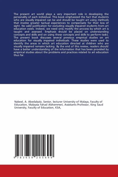 The present art world plays a very important role in developing the personality of each individual. This book emphasized the fact that students who are visually impaired can be and should be taught art using methods that involve greater tactual experiences to compensate for their loss of sight. No valid justification for excluding visually impaired students from art education exists. Indeed, we need only modify the process by which art is taught and assessed. Emphasis should be placed on understanding concepts and skills and on using these concepts and skills to perform tasks. The present book discusses several previous empirical studies on art education for visually impaired individuals. These studies were used to identify the areas in which art education directed at children who are visually impaired remains lacking. By the end of this review, readers should have a better understanding of the information that has been provided by empirical studies about the problems and practices related to art education thus far.