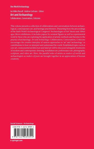 Table of Contents: 1. Introduction Ian Alden Russell; Andrew Cochrane.- Part I. Exploration and Experimentation.- 2. Colin Renfrew: A conversation.- 3. The cave and the mind: Towards a sculptural and experimental approach to Upper Palaeolithic art Andrew Meirion Jones, University of Southampton.- 4. Joining Forces: Neuroaesthetics, contemporary visual art and archaeological interpretation of the past Liliana Janick, University of Cambridge.- 5. Interface I: Day of the Figurines IRAC.- Part II. Curation and Exhibition.- 6. Art and Archaeology: The Ábhar agus Meon exhibition series Ian Alden Russell, Brown University.- 7. Art and Kilmainham Gaol: Negotiating art's critical intervention in the heritage site, Pat Cooke, University College Dublin.- 8. Another proof of the preceding theory: Film, materialities and Stonehenge Helen Wickstead, Kingston University, London.- 9. Interface II: Home: An installation for living in Christine Finn, Independent Scholar.- Part III. Application and Exchange.- 10. Dust and debit age: An archaeology of Francis Bacon's studio Blaze O'Connor, University College Dublin.- 11. Creating contexts: Between the archaeological site and art gallery Antonia Thomas, University of the Highlands and Islands.- 12. Artists connecting archaeologists: Encountering the third kind Michaël Jasmin, Artist and Independent Scholar.- 13. Interface III: Digital Dwelling at Skara Brae Alice Watterson, Glasgow School of the Arts Kieran Baxter, University of Dundee Aaron Watson, www.monumental.uk.com.- Part IV. Archaeology after Art.- 14. Pearson Shanks - theatre/archaeology - return and prospect Mike Pearson, Aberystwyth University Michael Shanks, Stanford University.- 15. Art // Archaeology // Art: Letting-go beyond Doug Bailey, San Francisco State University.