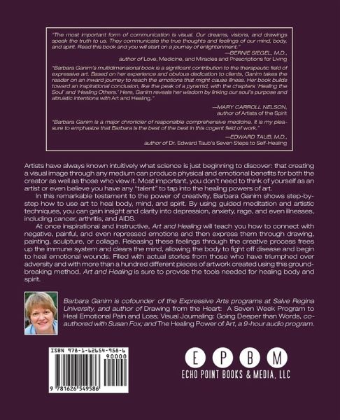 Artists have always known intuitively what science is just beginning to discover: that creating a visual image through any medium can produce physical and emotional benefits for both the creator as well as those who view it. Most important, you don't need to think of yourself as an artist or even believe you have any "talent" to tap into the healing powers of art. In this remarkable testament to the power of creativity, Barbara Ganim shows step-by-step how to use art to heal body, mind, and spirit. By using guided meditation and artistic techniques, you can gain insight and clarity into depression, anxiety, rage, and even illnesses, including cancer, arthritis, and AIDS. At once inspirational and instructive, Art and Healing will teach you how to connect with negative, painful, and even repressed emotions and then express them through drawing, painting, sculpture, or collage. Releasing these feelings through the creative process frees up the immune system and clears the mind, allowing the body to fight off disease and begin to heal emotional wounds. Filled with actual stories from those who have triumphed over adversity and with more than a hundred different pieces of artwork created using this groundbreaking method, Art and Healing is sure to provide the tools needed for healing body and spirit.
