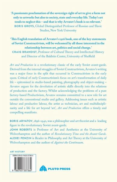 Boris Arvatov's Art and Production is a classic of the early Soviet avant-garde. Now nearing a century since its first publication, it is a crucial intervention for those seeking to understand the social dynamic of art and revolution during the period. Derived from the internal struggles of Soviet Constructivism, as it confronted the massive problems of cultural transformation after 'War Communism', Arvatov's writing is a major force in the split that occurred in the revolutionary horizons of Constructivism in the early 1920s. Critical of early Constructivism's social-aesthetic process of art's transformation of daily life - epitomised in studio-based painting, photography and object making - Arvatov polemicises for the devolution of artistic skills directly into the relations of production and the factory. Whilst acknowledging the problems of a pure factory-based Productivism, Arvatov remains overwhelmingly committed to a new role and function for art outside the conventional studio and traditional gallery. Addressing issues such as artistic labour and productive labour, the artist as technician, art and multidisciplinarity and a life for art beyond 'art' - finding new relevance amidst the extensive social turn of contemporary participatory art - Art and Production offers a timely and compelling manifesto.