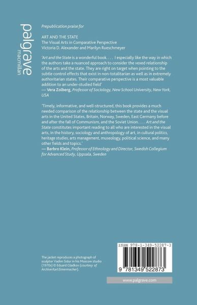 'Timely, informative, and well-structured this book provides a much needed comparison of the relationship between the state and the visual arts in the United States, Britain, Norway, Sweden, East Germany before the fall of Communism, and the Soviet Union. The authors convincingly argue that, regardless of political system, the state is everywhere 'deeply involved in art' and that 'the market alone prevails nowhere'...Art and the State constitutes important reading to all who are interested in the visual arts, in the history, sociology and anthropology of art, in cultural politics, heritage studies, arts management, museology, political science, and many other fields and topics.' - Barbro Klein, Professor of Ethnology, Director, Swedish Collegium for Advanced Study (SCASSS), Uppsala