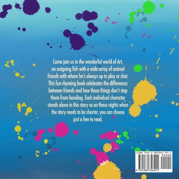 Come join us in the wonderful world of Art, an outgoing fish with a wide array of animal friends, with whom he's always up to play and chat! This fun rhyming book focuses on inclusivity and celebrates the differences between friends and how those things don't stop them from bonding. Each individual character stands alone in this story so on those nights when the story needs to be shorter, you can choose just a few to read.