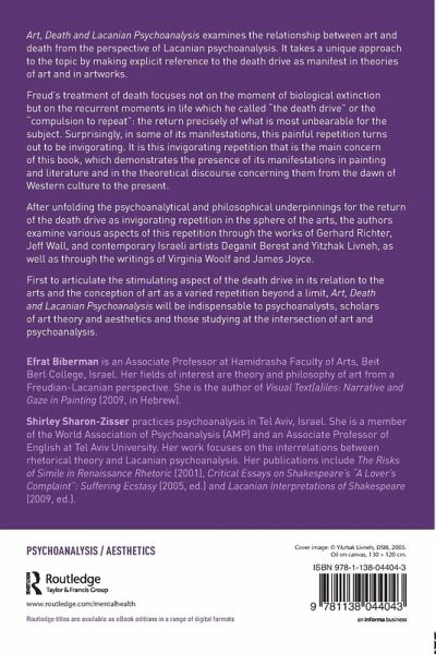 Art, Death and Lacanian Psychoanalysis examines the relationship between art and death from the perspective of Lacanian psychoanalysis. It takes a unique approach to the topic by making explicit reference to the death drive as manifest in theories of art and in artworks. Freud's treatment of death focuses not on the moment of biological extinction but on the recurrent moments in life which he called "the death drive" or the "compulsion to repeat": the return precisely of what is most unbearable for the subject. Surprisingly, in some of its manifestations, this painful repetition turns out to be invigorating. It is this invigorating repetition that is the main concern of this book, which demonstrates the presence of its manifestations in painting and literature and in the theoretical discourse concerning them from the dawn of Western culture to the present. After unfolding the psychoanalytical and philosophical underpinnings for the return of the death drive as invigorating repetition in the sphere of the arts, the authors examine various aspects of this repetition through the works of Gerhard Richter, Jeff Wall, and contemporary Israeli artists Deganit Berest and Yitzhak Livneh, as well as through the writings of Virginia Woolf and James Joyce. First to articulate the stimulating aspect of the death drive in its relation to the arts and the conception of art as a varied repetition beyond a limit, Art, Death and Lacanian Psychoanalysis will be indispensable to psychoanalysts, scholars of art theory and aesthetics and those studying at the intersection of art and psychoanalysis.