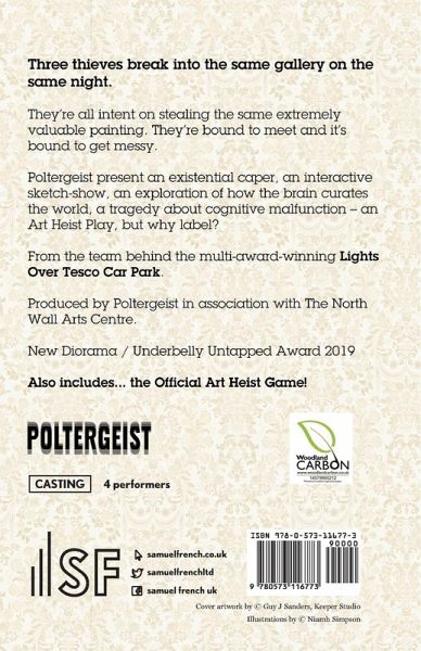 Three Thieves break into the same gallery on the same night. They're all intent on stealing the same Extremely Valuable Painting. They're bound to meet and it's bound to get messy. Poltergeist present an existential caper, an interactive sketch-show, an exploration of how the brain curates the world, a tragedy about cognitive malfunction - an Art heist play, but why label? From the team behind the multi-award-winning Lights Over Tesco Car Park. Produced by Poltergeist in association with The North Wall Arts Centre. New Diorama / Underbelly Untapped Award 2019 Also includes... the Official Art Heist Game!