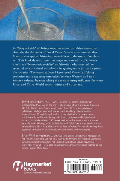 David Lee Craven, Ph.D. (1979), University of North Carolina, was Distinguished Professor at University of New Mexico and passed away in 2012. He was an art historian who displayed rare intellect and industry. In his lifetime Craven wrote more than fifteen monographs and exhibition catalogues on such diverse topics as Diego Rivera, Abstract Expressionism, Rudolf Baranik and art associated with Latin American revolutions. In addition to being a dedicated professor and inspirational lecturer, he published over 150 essays, articles and reviews in such academic journals as Art History, Kritische Berichte and Third Text and mass-circulation publications such as Arts Magazine and Tema Celeste; further, his writings have appeared in dozens of anthologies, encyclopaedias and newspapers. Brian Winkenweder, Ph.D. (2004), Stony Brook University is Professor of Art History at Linfield College, McMinnville, Oregon. He co-edited Dialectical Conversions: Donald Kuspit’s Art Criticism with David Craven (Liverpool University Press, 2011). He also published 'David Craven’s Future Perfect' at the online journal Third Text.