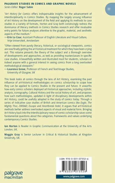 "Art History for Comics: Past, Present and Potential Futures, is a monograph by Maggie Gray and Ian Horton ... . The chapters are designed to elucidate and educate, carefully outlining the challenges and benefits of various approaches in ways that should make the book a useful teaching tool. The case studies also showcase the authors' respective areas of expertise ... . art historians will find a wealth of inspiration between the covers of this wide-ranging collection." (Roger Sabin, The Year's Work in English Studies, Issue 2, July 10, 2024)