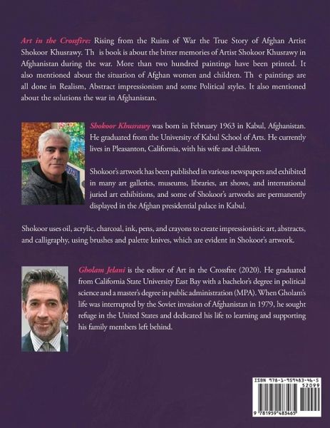 Art in the Crossfire: Rising from the Ruins of War the True Story of Afghan Artist Shokoor Khusrawy. This book is about the bitter memories of Artist Shokoor Khusrawy in Afghanistan during the war. More than two hundred paintings have been printed. It also mentioned the situation of Afghan women and children. The paintings are all done in Realism, Abstract Impressionism, and some Political styles. It also mentioned the solutions to the war in Afghanistan.