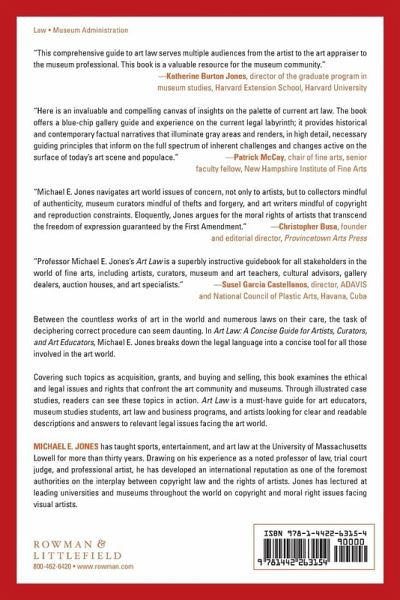 Art Law provides a dynamic survey of topical legal and ethical issues that confront museums that acquire and display art, auction houses that sell art, libraries that exhibit art, foundations that support artists, and artists that create art. This concise book is written as a tool for art educators, museum studies students, art law and business programs, and artists looking for clear and readable descriptions and answers to the relevant legal issues facing the art world community.