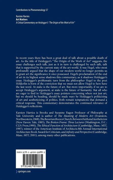 Introduction: The End of Art?.- In Search of a Hero.- Leaders and Followers.- Origins.- Art Work and Thing.- A Pair of Shoes.- Work andWorld.- World and Earth.- The Essence of Truth.- Truth and Art.- Creators and Preservers.- Art Is Poetry.- Conclusion: Epilogue and Addendum.