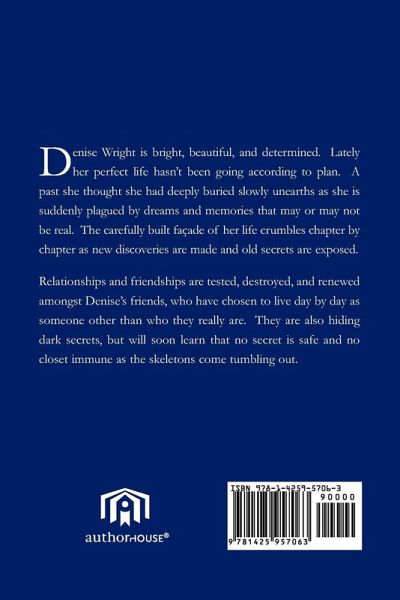 Denise Wright is beautiful, successful, and determined. Lately her perfect life hasn't been going according to plan. A past she thought she had deeply buried slowly unearths as she is suddenly plagued by dreams and memories that may or may not be real. The carefully built façade of her life crumbles chapter by chapter as secrets are exposed and Denise learns that the need to forgive and to be forgiven may come at a price even she's not sure she can pay. She will realize that she has become a victim of her own deceit while searching for wealth and recognition in her career. What she eventually find is priceless. She finds herself. Relationships and friendships are tested, destroyed, and renewed amongst some of Denise's friends, who have chosen to live day by day as someone other than who they really are. They are also hiding dark secrets, but will soon learn that no secret is safe and no closet immune as the skeletons come tumbling out. Raw sexuality, intimacy, and unrelenting love set the pace that takes you down a sensual winding path of lies and discovery.