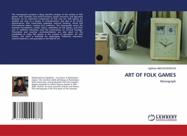 This monograph provides a deep scientific analysis of the artistry of folk games, their aesthetic and social functions, poetic structure, and figurative features. As an important component of folk oral art, folk games are studied not only as a means of entertainment, but also as an artistic phenomenon that inextricably embodies national thinking, moral and informational values, customs and traditions. The monograph covers the dramatic foundations, artistic means, symbolism of folk games, and their role in aesthetic education and the preservation of cultural heritage. Theoretical and practical recommendations are also given on the possibilities of using folk games in the context of education, art, and culture. The work is intended for philologists, folklorists, educators, cultural historians, and specialists in the field of art.