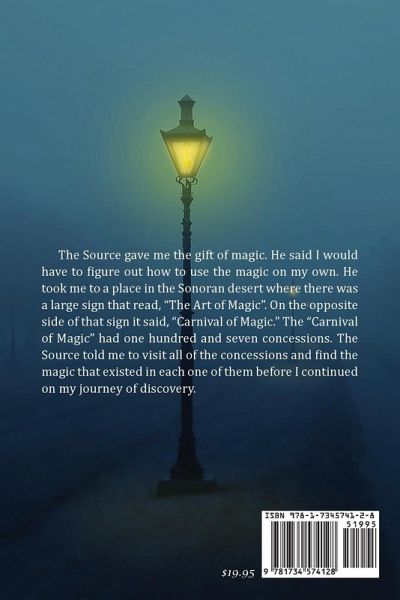 The Source gave me the gift of magic. He said I would have to figure out how to use the magic on my own. He took me to a place in the Sonoran desert where there was a large sign that read, "The Art of Magic". On the opposite side of that sign it said, "Carnival of Magic." The "Carnival of Magic" had one hundred and seven concessions. The Source told me to visit all of the concessions and find the magic that existed in each one of them before I continued on my journey of discovery.