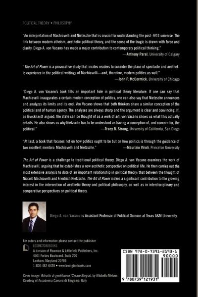 The Art of Power offers up a challenge to traditional political theory. Diego A. von Vacano provides original interpretations of Machiavelli's oeuvre and of Nietzsche's relationship to politics.