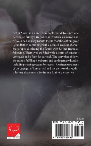 Art of Storm is a nonfiction book that delves into one particular family's tragedies in western Cameroon in Africa. The book begins with the story of the author's great - grandfather, continuing with a detailed account of a war that erupts, displacing the family with further tragedies following. Their lives are filled with a storm of constant upheavals and a fight for survival. The story then follows the author, fulfilling her dreams and battling many hurdles including crossing oceans for success. A written testament of the strength of human will and the desire to thrive, this is history that comes alive from a family's perspective.