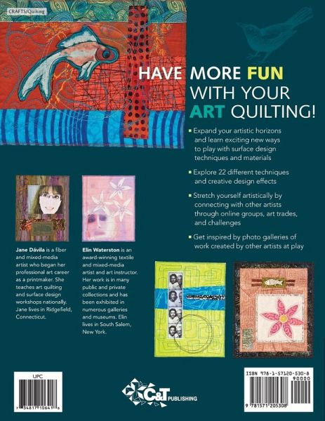 Have More Fun with Your Art Quilting! • Expand your artistic horizons and learn exciting new ways to play with surface design techniques and materials• Explore 22 different techniques and creative design effects • Stretch yourself artistically by connecting with other artists through online groups, art trades, and challenges • Get inspired by photo galleries of work created by other artists at play Packed with creative new surface design techniques and ideas for collaborating with artists in person and online, Art Quilts at Play is the perfect companion to Jane Dávila and Elin Waterston's bestselling Art Quilt Workbook.…mehr