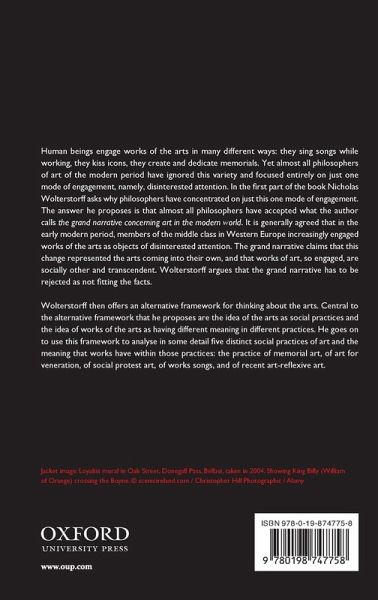 We engage with works of art in many ways, yet almost all modern philosophers of art have focused entirely on one mode of engagement: disinterested attention. Nicholas Wolterstorff explores why this is, and offers an alternative framework according to which arts are a part of social practice, and have different meaning in different practices.