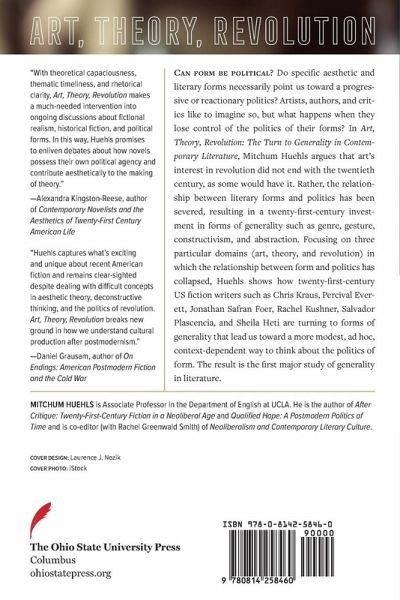 Can form be political? Do specific aesthetic and literary forms necessarily point us toward a progressive or reactionary politics? Artists, authors, and critics like to imagine so, but what happens when they lose control of the politics of their forms? In Art, Theory, Revolution: The Turn to Generality in Contemporary Literature, Mitchum Huehls argues that art's interest in revolution did not end with the twentieth century, as some critics would have it, but rather that the relationship between literary forms and politics has been severed, resulting in a twenty-first century investment in forms of generality such as genre, gesture, constructivism, and abstraction. Focusing on three particular domains (art, theory, and revolution) in which the relationship between form and politics has collapsed, Huehls shows how twenty-first-century US fiction writers such as Chris Kraus, Percival Everett, Jonathan Safran Foer, Rachel Kushner, Salvador Plascencia, and Sheila Heti are turning to forms of generality that lead us toward a more modest, ad hoc, context-dependent way to think about the politics of form. The result is the first major study of generality in literature.