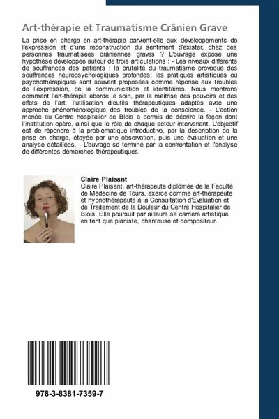 La prise en charge en art-thérapie parvient-elle aux développements de l'expression et d une reconstruction du sentiment d'exister, chez des personnes traumatisées crâniennes graves ? L'ouvrage expose une hypothèse développée autour de trois articulations : - Les niveaux différents de souffrances des patients : la brutalité du traumatisme provoque des souffrances neuropsychologiques profondes; les pratiques artistiques ou psychothérapiques sont souvent proposées comme réponse aux troubles de l expression, de la communication et identitaires. Nous montrons comment l art-thérapie aborde le soin, par la maîtrise des pouvoirs et des effets de l art, l utilisation d outils thérapeutiques adaptés avec une approche phénoménologique des troubles de la conscience. - L'action menée au Centre hospitalier de Blois a permis de décrire la façon dont l institution opère, ainsi que le rôle de chaque acteur intervenant. L'objectif est de répondre à la problématique introductive, par la description de la prise en charge, étayée par une observation, puis une évaluation et une analyse détaillées. - L'ouvrage se termine par la confrontation et l'analyse de différentes démarches thérapeutiques.
