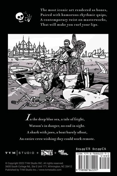 "Art to the Bones" is an exploration of art that transcends the boundaries of time and tradition. Drawing inspiration from key art movements throughout history, this collection weaves together elements from The Renaissance, Baroque, Romanticism, Impressionism, Post-Impressionism, and Modern Art. It takes iconic masterpieces and gives them a unique twist, transforming them into bone-based reinterpretations. In the world of art history books, "Art to the Bones" stands out as a captivating and visually striking addition. It takes classic art and combines it with elements of contemporary humor, creating a fusion that bridges the gap between the centuries. Each page presents a new surprise, where renowned artworks have been reimagined with skeletal elements. The juxtaposition of the old and the new, But what truly sets "Art to the Bones" apart is the addition of humorous rhythmic quips. These clever remarks add an unexpected layer of depth and humor to the artworks, providing a fresh perspective on familiar masterworks. They invite you to look closer, ponder the juxtaposition, and ultimately, share a laugh as you appreciate the wit infused into each piece. So, whether you're an art history buff or simply someone who enjoys a good laugh, "Art to the Bones" promises an engaging journey through the world of art. It's a contemporary take on classic masterpieces that will not only make you appreciate the rich history of art but also curl your lips in amusement and appreciation.