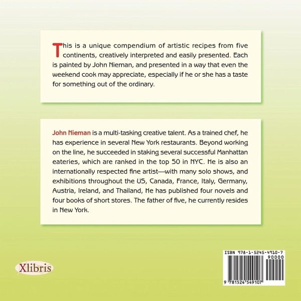 This is a unique compendium of artistic recipes from five continents, creatively interpreted and easily presented. Each is painted by John Nieman, and presented in a way that even the weekend cook may appreciate, especially if he or she has a taste for something out of the ordinary.