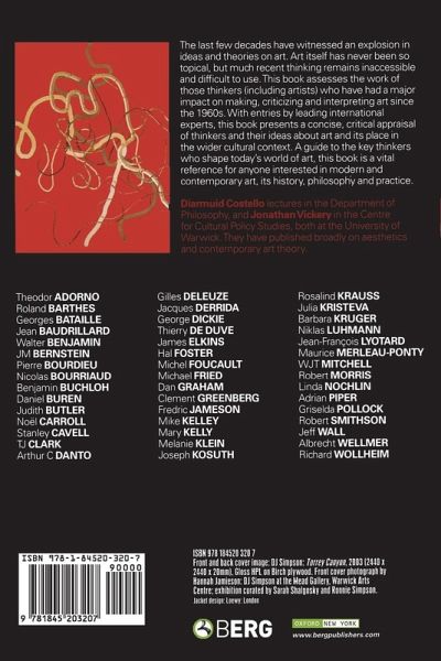 The last few decades have witnessed an explosion in ideas and theories on art. Art itself has never been so topical, but much recent thinking remains inaccessible and difficult to use. This book assesses the work of those thinkers (including artists) who have had a major impact on making, criticizing and interpreting art since the 1960s. With entries by leading international experts, this book presents a concise, critical appraisal of thinkers and their ideas about art and its place in the wider cultural context. A guide to the key thinkers who shape today's world of art, this book is a vital reference for anyone interested in modern and contemporary art, its history, philosophy and practice.Theodor ADORNO * Roland BARTHES * Georges BATAILLE * Jean BAUDRILLARD * Walter BENJAMIN * JM BERNSTEIN * Pierre BOURDIEU * Nicolas BOURRIAUD * Benjamin BUCHLOH * Daniel BUREN * Judith BUTLER * Noël CARROLL * Stanley CAVELL * TJ CLARK * Arthur C. DANTO * Gilles DELEUZE * Jacques DERRIDA * George DICKIE * Thierry DE DUVE * James ELKINS * Hal FOSTER * Michel FOUCAULT * Michael FRIED * Dan GRAHAM * Clement GREENBERG * Fredric JAMESON * Mike KELLEY * Mary KELLY * Melanie KLEIN * Joseph KOSUTH * Rosalind KRAUSS * Julia KRISTEVA * Barbara KRUGER * Niklas LUHMANN * Jean-François LYOTARD * Maurice MERLEAU-PONTY * WJT MITCHELL * Robert MORRIS * Linda NOCHLIN * Adrian PIPER * Griselda POLLOCK * Robert SMITHSON * Jeff WALL * Albrecht WELLMER * Richard WOLLHEIM