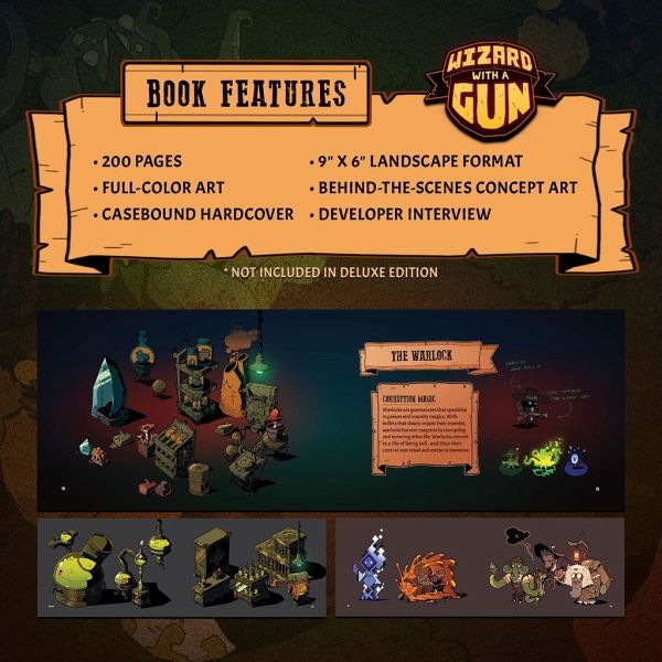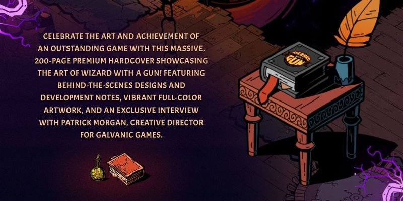 The Art of Wizard with a Gun ist ein hochwertiges und offizielles 200-seitiges Hardcover-Artbook, das die Kunst des erfolgreichen Videospiels WIZARD WITH A GUN zum Leben erweckt! Entdecken Sie die Entwicklung dieses fesselnden, actiongeladenen Spiels anhand von Konzeptzeichnungen, Entwicklungsnotizen und einem ausführlichen Interview mit dem Creative Director Patrick Morgan. Diese Sammlerausgabe mit hochwertigem Hardcover-Einband und vollfarbigen Bildern gewährt den Fans einen echten Einblick in die Entstehung dieses herausragenden Spiels.