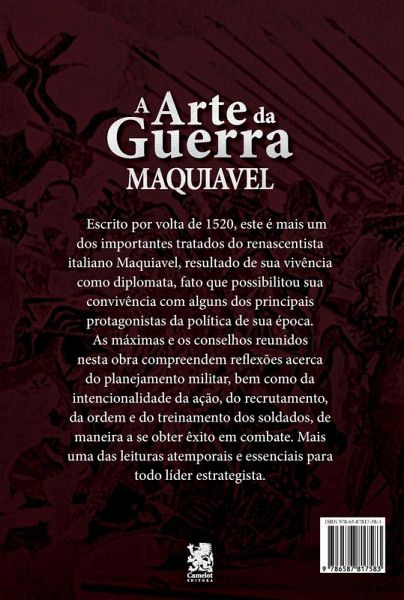 Escrito por volta de 1520, este é mais um dos importantes tratados do renascentista italiano Maquiavel, resultado de sua vivência como diplomata, fato que possibilitou sua convivência com alguns dos protagonistas da política de sua época. As máximas e os conselhos reunidos nesta obra compreendem reflexões acerca do planejamento militar, bem como da intencionalidade da ação, do recrutamento, da ordem e do treinamento dos soldados, de maneira a se obter êxito em combate. Mais uma das leituras atemporais e essenciais para todo líder estrategista.