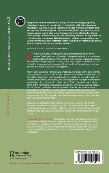 Artemis is a literary, iconographic, and archaeological study of the ancient Greek goddess of the hunt, who presided over the transitions and mediations between the wild and the civilized, youth and maturity, life and death. Beginning with a study of the early origins of Artemis and her cult in the Bronze and Archaic Ages, Budin explores the goddess' persona and her role in the lives of her worshippers. This volume examines her birth and childhood, her place in the divine family, her virginity, and her associations with those places where the wilds become the "cities of just men." The focus then turns to Artemis' role in the lives of children and women, particularly how she helps them navigate the transition to adulthood and, perhaps too often, death. Budin goes on to reconsider some of the more harrowing aspects of Artemis' mythology, such as plague and bloodshed, while also examining some of her kinder, oft overlooked associations. Finally, the role of Artemis in the Renaissance and modern society is addressed, from the on-going fascination with the "breasts" on the statue of Artemis of Ephesos to the Artemisian aspects of Katniss Everdeen. Written in an accessible style, Artemis is a crucial resource for students not only of Greek myth, religion and cult, but also those seeking to understand the lives and roles of girls and women in ancient Greece, as this goddess presided over their significant milestones, from maiden to wife to mother.