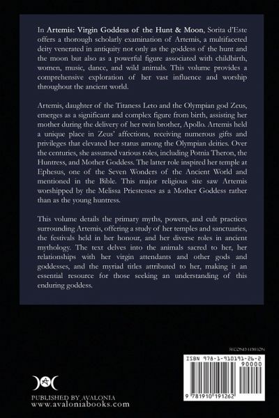 In Artemis: Virgin Goddess of the Hunt & Moon, Sorita d'Este offers a thorough scholarly examination of Artemis, a multifaceted deity venerated in antiquity not only as the goddess of the hunt and the moon but also as a powerful figure associated with childbirth, women, music, dance, and wild animals. This volume provides a comprehensive exploration of her vast influence and worship throughout the ancient world. Artemis, daughter of the Titaness Leto and the Olympian god Zeus, emerges as a significant and complex figure from birth, assisting her mother during the delivery of her twin brother, Apollo. Artemis held a unique place in Zeus' affections, receiving numerous gifts and privileges that elevated her status among the Olympian deities. Over the centuries, she assumed various roles, including Potnia Theron, the Huntress, and Mother Goddess. The latter role inspired her temple at Ephesus, one of the Seven Wonders of the Ancient World and mentioned in the Bible. This major religious site saw Artemis worshipped by the Melissa Priestesses as a Mother Goddess rather than as the young huntress. This volume details the primary myths, powers, and cult practices surrounding Artemis, offering a study of her temples and sanctuaries, the festivals held in her honour, and her diverse roles in ancient mythology. The text delves into the animals sacred to her, her relationships with her virgin attendants and other gods and goddesses, and the myriad titles attributed to her, making it an essential resource for those seeking an understanding of this enduring goddess. -------------------------------------------------------------------- Second, Revised edition of the 2005 book by the same author, Artemis: Virgin Goddess of the Sun and Moon.