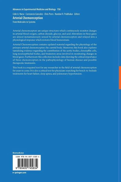 Arterial chemoreceptors are unique structures which continuously monitor changes in arterial blood oxygen, carbon dioxide, glucose, and acid. Alterations in these gases are almost instantaneously sensed by arterial chemoreceptors and relayed into a physiological response which restores blood homeostasis.Arterial Chemoreception contains updated material regarding the physiology of the primary arterial chemoreceptor; the carotid body. Moreover, this book also explores tantalizing evidence regarding the contribution of the aortic bodies, chromaffin cells, lung neuroepithelial bodies, and brainstem areas involved in monitoring changes in blood gases. Furthermore this collection includes data showing the critical importance of these chemoreceptors in the pathophysiology of human disease and possible therapeutic treatments.This book is a required text for any researcher in the field of arterial chemoreception for years to come. It is also a critical text for physicians searching for bench-to-bedside treatments for heart failure, sleep apnea, and pulmonary hypertension.