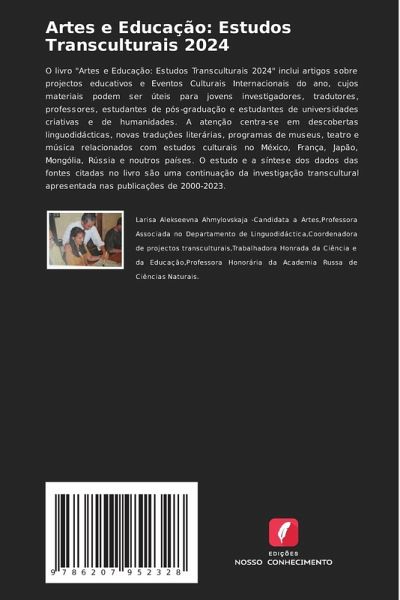 O livro "Artes e Educação: Estudos Transculturais 2024" inclui artigos sobre projectos educativos e Eventos Culturais Internacionais do ano, cujos materiais podem ser úteis para jovens investigadores, tradutores, professores, estudantes de pós-graduação e estudantes de universidades criativas e de humanidades. A atenção centra-se em descobertas linguodidácticas, novas traduções literárias, programas de museus, teatro e música relacionados com estudos culturais no México, França, Japão, Mongólia, Rússia e noutros países. O estudo e a síntese dos dados das fontes citadas no livro são uma continuação da investigação transcultural apresentada nas publicações de 2000-2023.